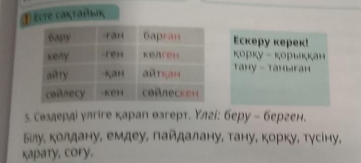 білген,қоданған,емдеген,пайдаланған,таныған,қорққан,түсінген,қаратқан,соққан