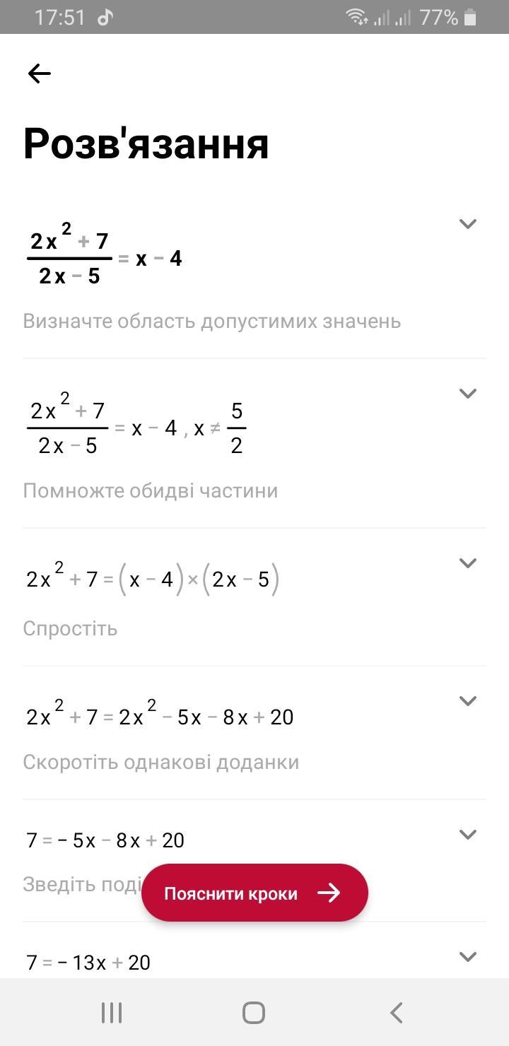 1) 2x2+7=(x-4) (2x-5)
