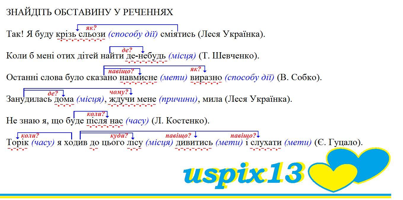 ЗНАЙДІТЬ ОБСТАВИНУ У РЕЧЕННЯХ