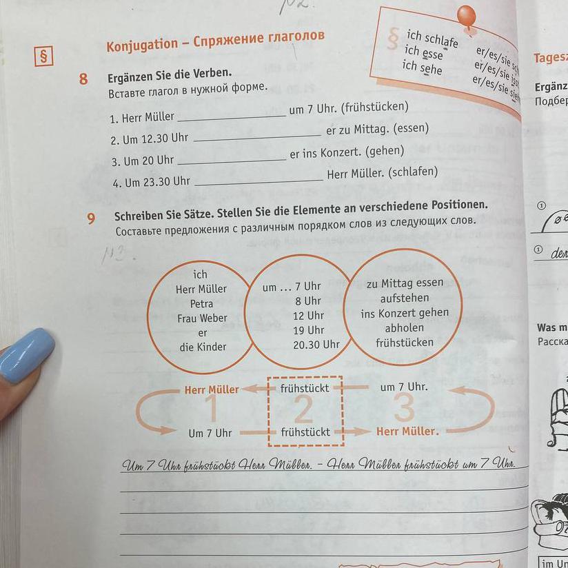 1. Herr Müller frühstückt um 7 Uhr.