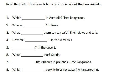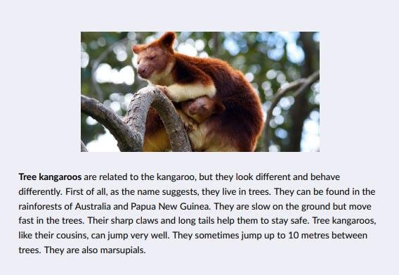 1. Which animals live in Australia? Tree kangaroos.