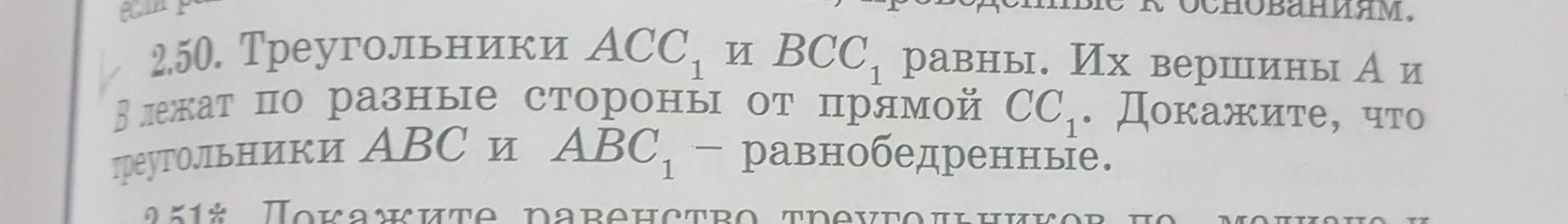 | 2.50. Треугольники ACC и BCC, равны, Их вершины А и В лежат по разные стороны от прямой СС.. Докажите, что треугольники ABC и ABC, - равнобедренные. Помогите!