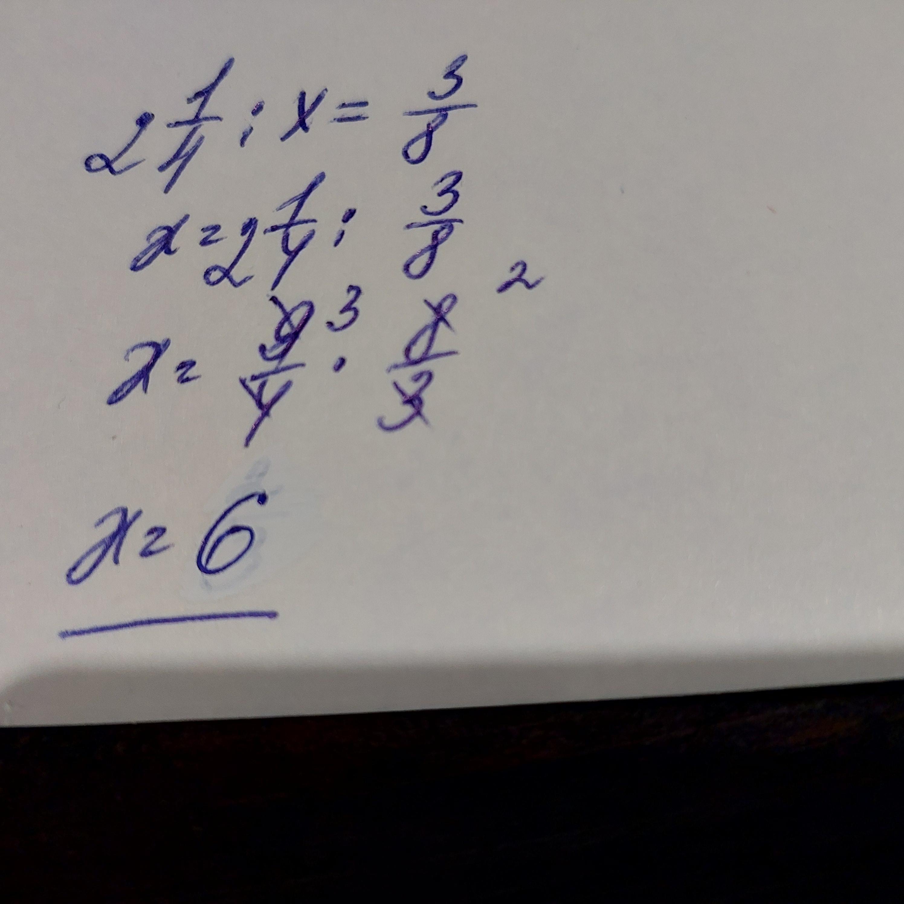 Укажи, яку дію треба виконати, щоб знайти корінь рівняння 2 1\4:х=3\8