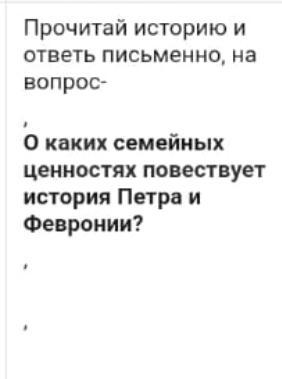 В этом произведении проповедуются многие из самых важных семейных ценностей. Первая из них - любовь: Пётр и Феврония любили друг друга всю жизнь. Вторая - верность: до конца жизни супруги друг другу были верны и прошли вместе все испытания. Третья - правдивость, искренность: когда Пётр поначалу, выздоровев при помощи Февронии, попытался обмануть Февронию и не взять её в жёны, он был заболел снова. Четвёртая семейная ценность - мудрость: Пётр и Феврония в начале повести состязаются в мудрости.