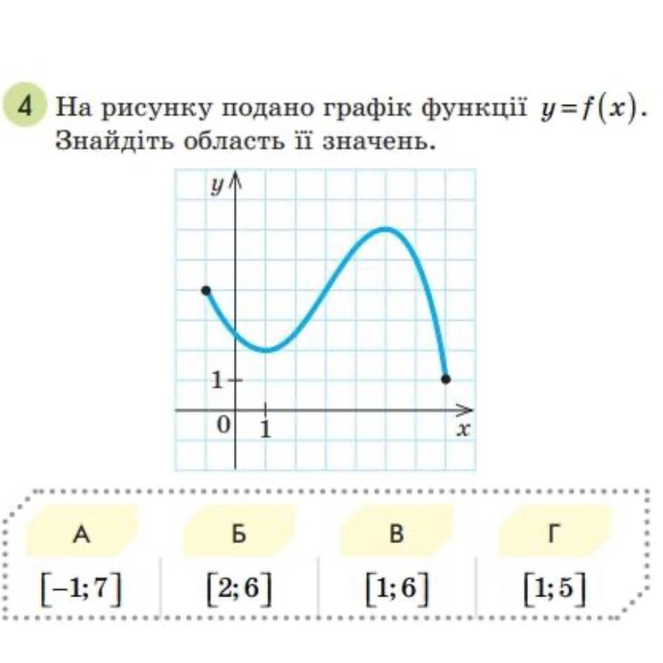 на рисунку подано графік функції y=f(x). Знайдіть область її значень.