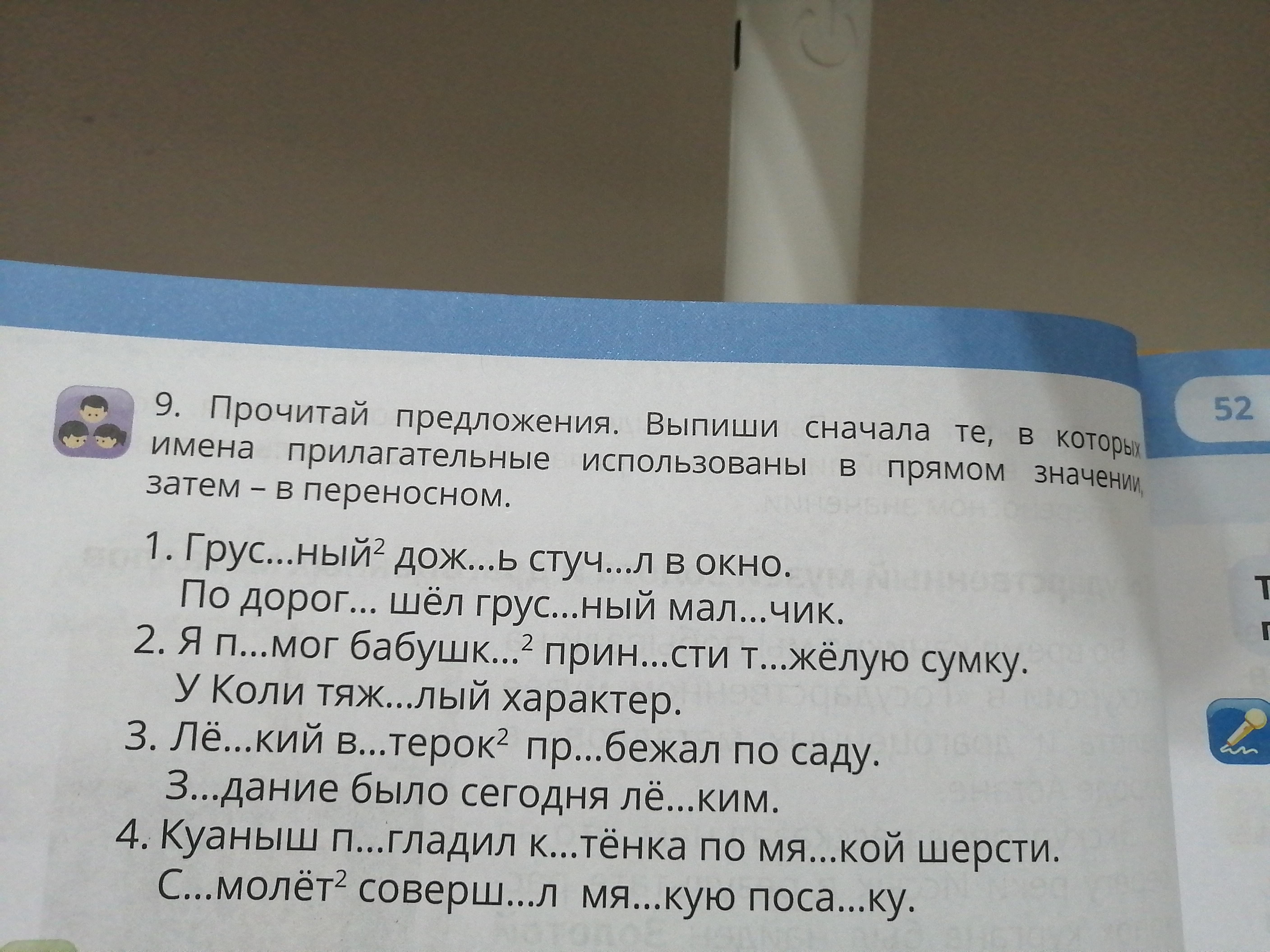 Прочитай предложения. Выпиши сначала те, в которых имена прилагательные использованы в прямом значении, затем-в переносном
