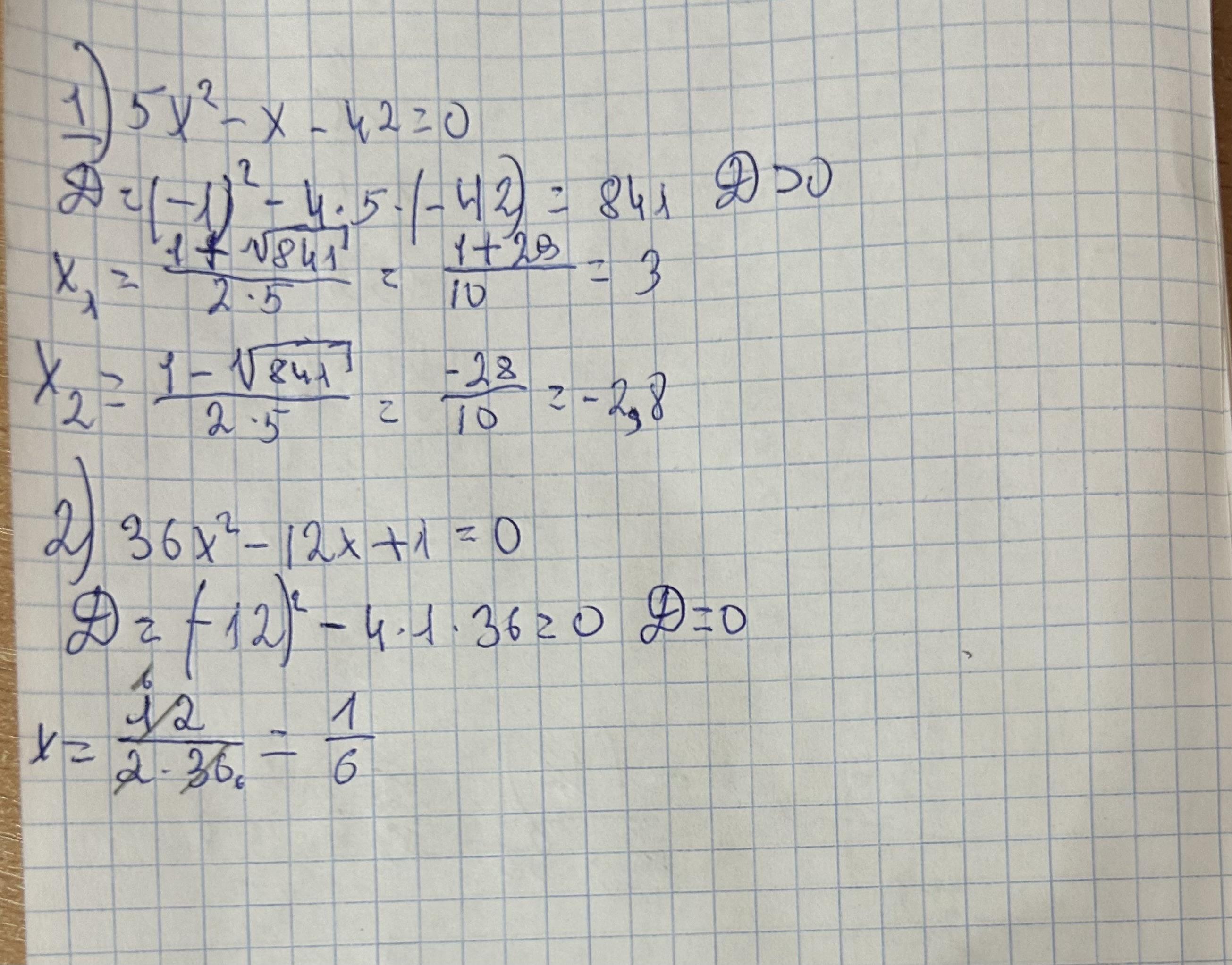 1) В данном уравнении D>0, значит уравнение будет иметь два корня.