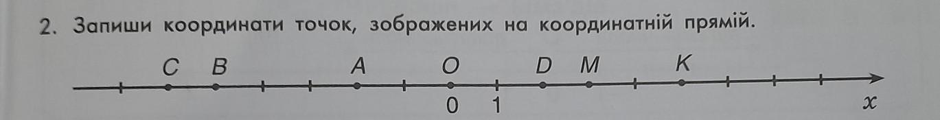 Запиши координати точок, зображиних на координатній прямій.