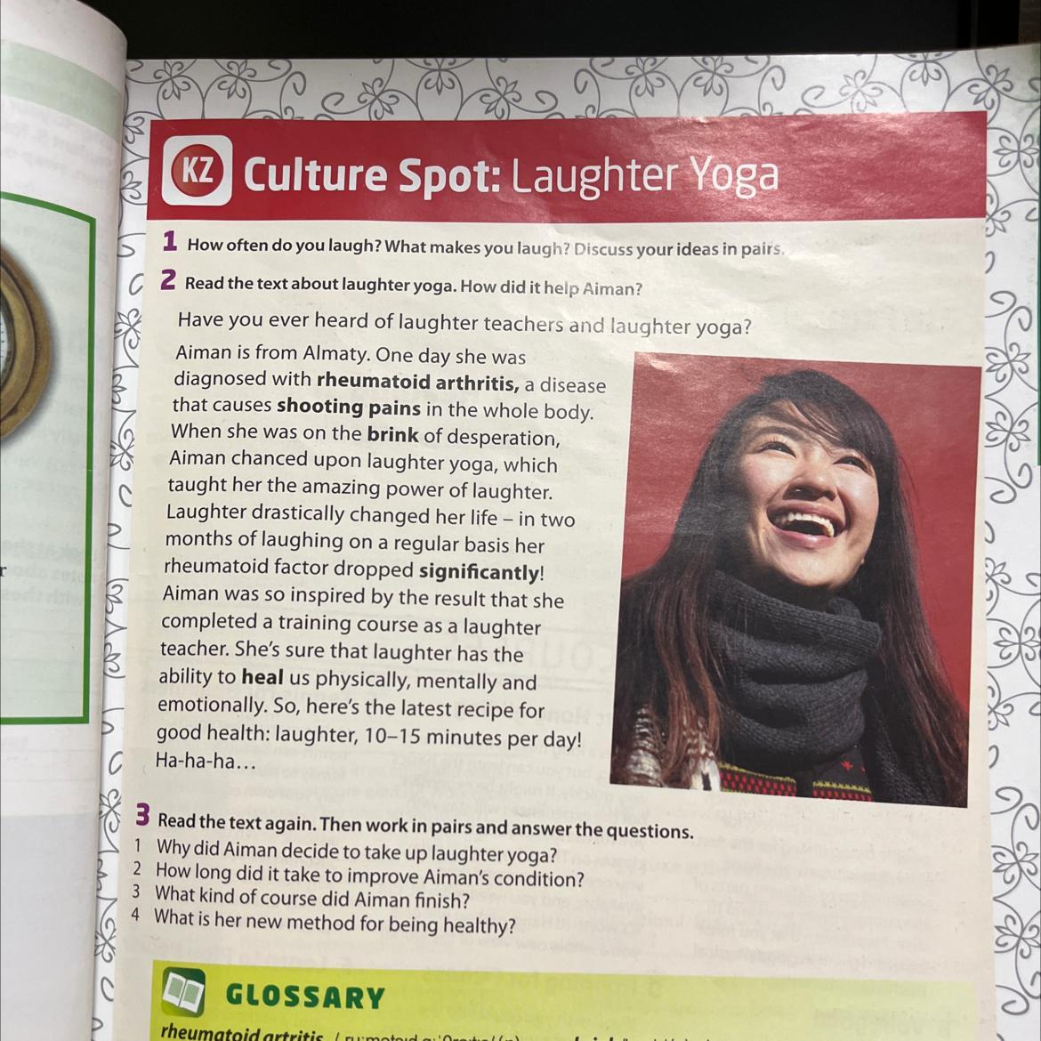 1 Why did Aiman decide to take up laughter yoga?