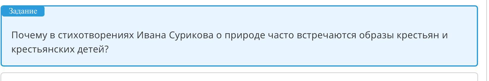 Почему в стихотворениях Ивана Сурикова о природе часто встречаются образы крестьян и крестьянских детей? Срочнооо вот сам стих и задание срочноо