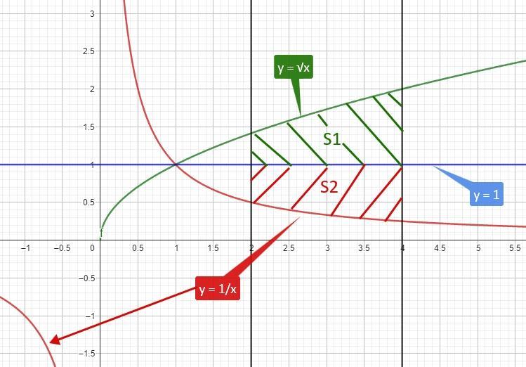 Обчислити площу фігури, обмеженої кривими ........ , ........... та прямим .......... , .......... .