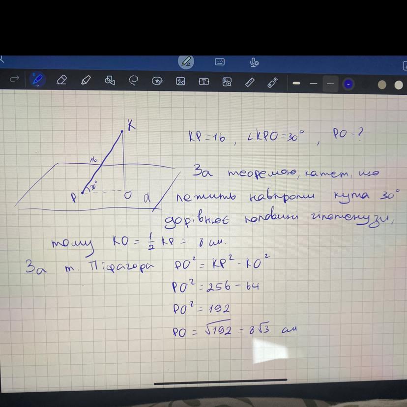HP=16•cos30=16•(√3/2)=8√3