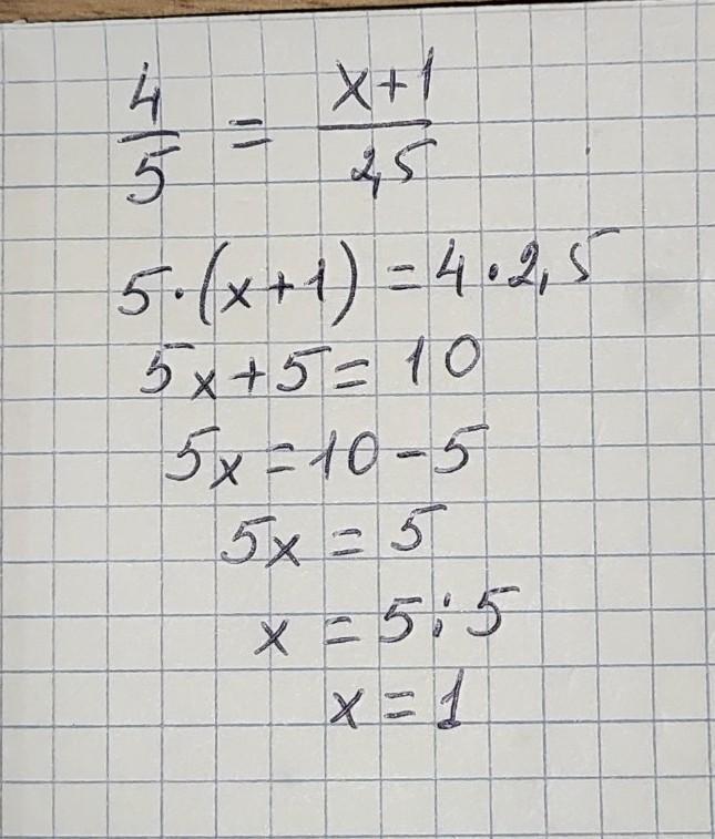 4/5 = (x + 1)/(2, 5) нужно БИСТРО!