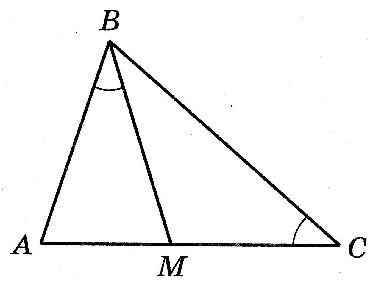 За властивістю подібних трикутників, коли ∠АВМ = ∠С: