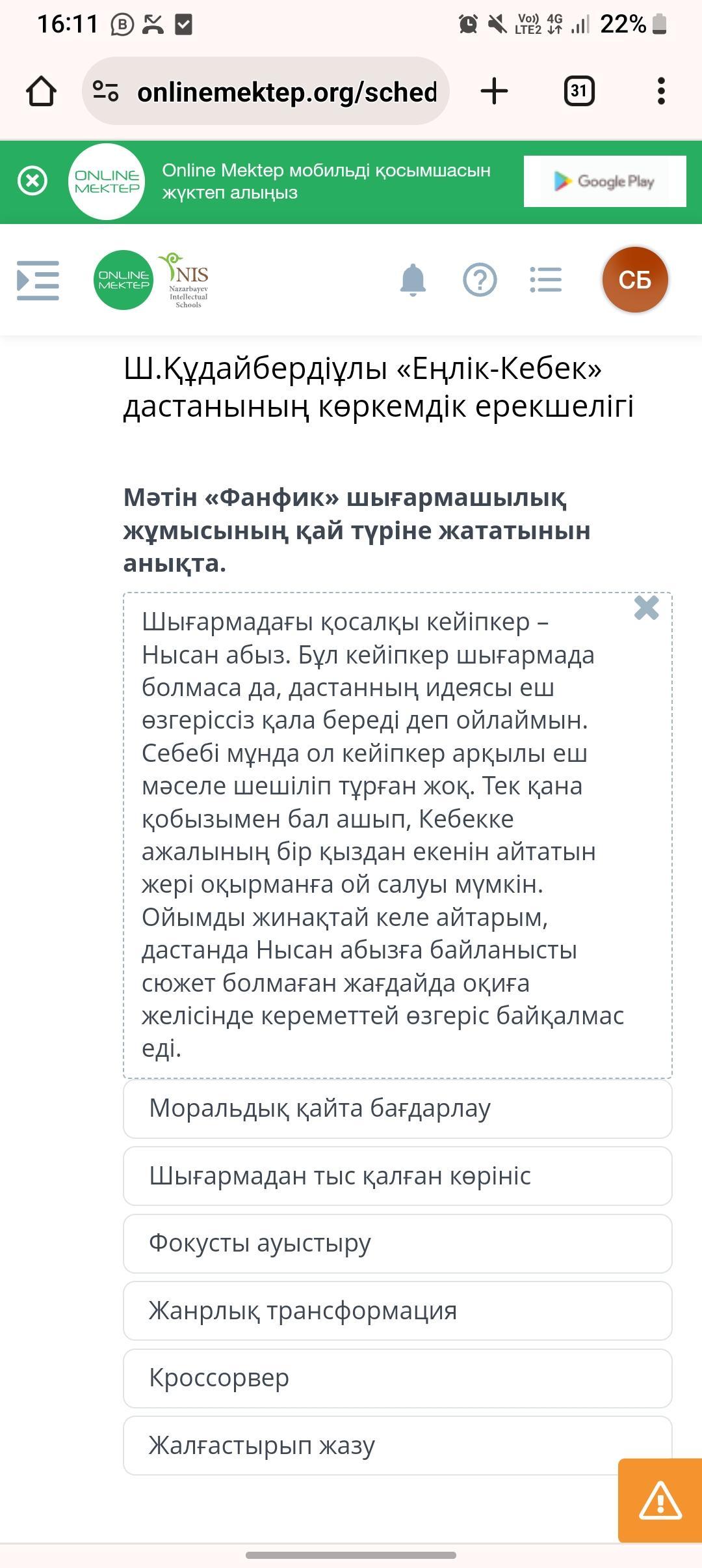 Ш. Құдайбердіұлы Еңлік-Кебек дастанының көркемдік ерекшелігі