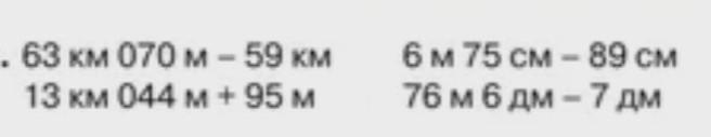 63 км 070 м - 59 км 13 км 044 м + 95 м 6 м 75 см - 89 см 76 м 6 дм - 7 дм