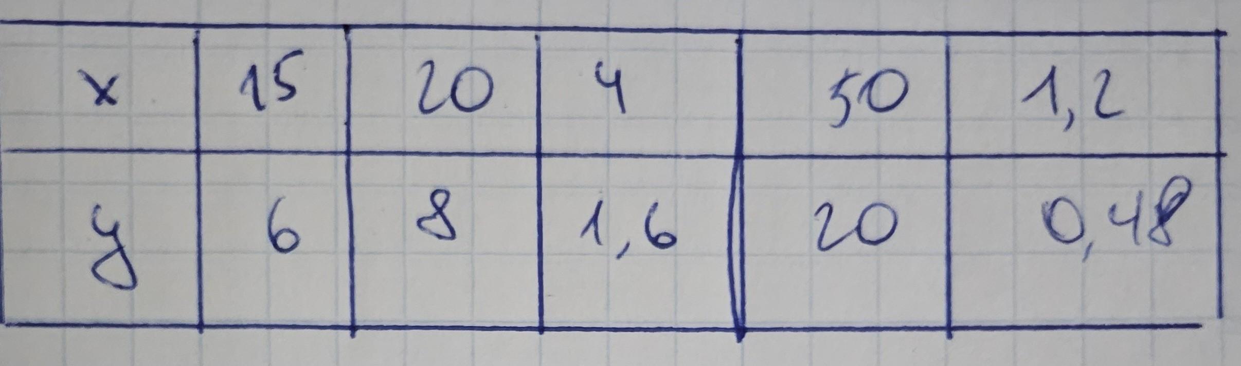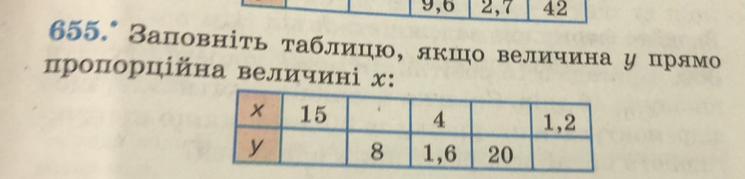 Заповніть таблицю, якщо величина y прямо пропорційна величині x.