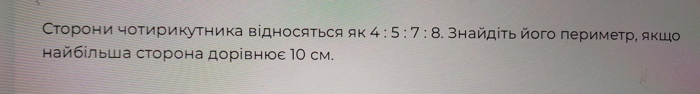 нехай кофіцієнт =1 , найбільша сторона 10 см , 4<5<7<8 , значить 8х найбільша сторона