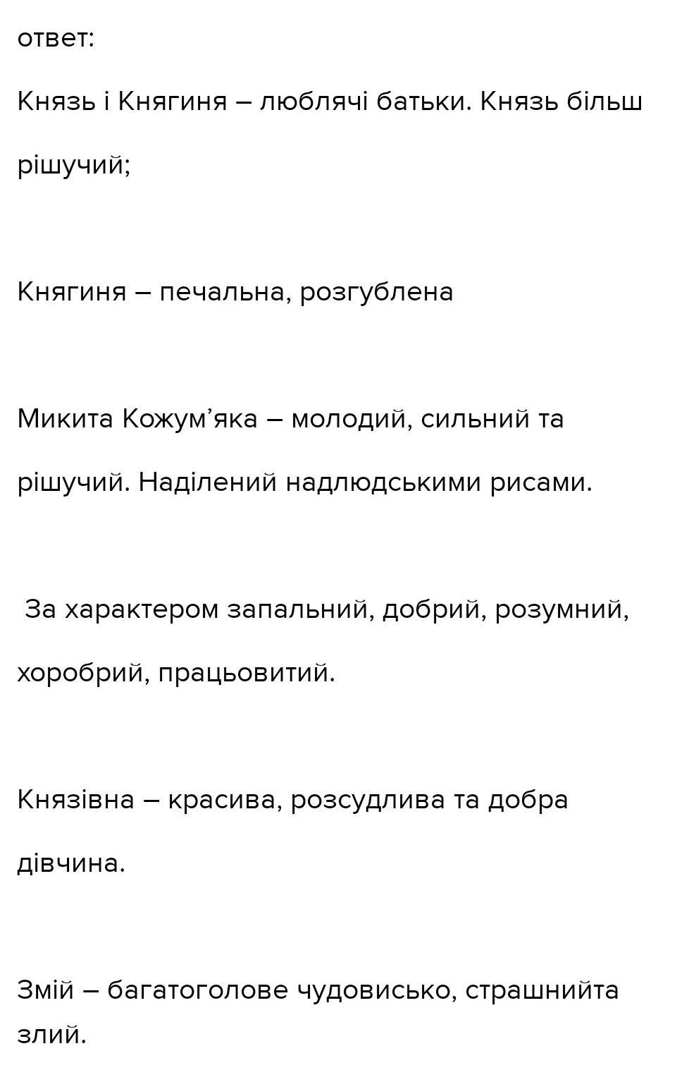 Випишіть в зошит літературний портрет головних і другорядних героїв казки "Микита Кожум'яка''