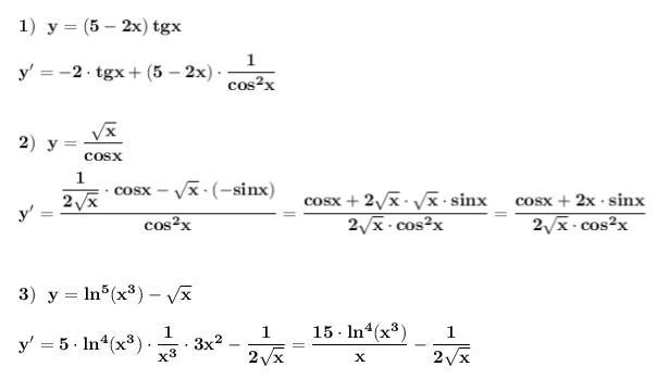 Найти производные функций . Применяем правила дифференцирования и таблицу производных .