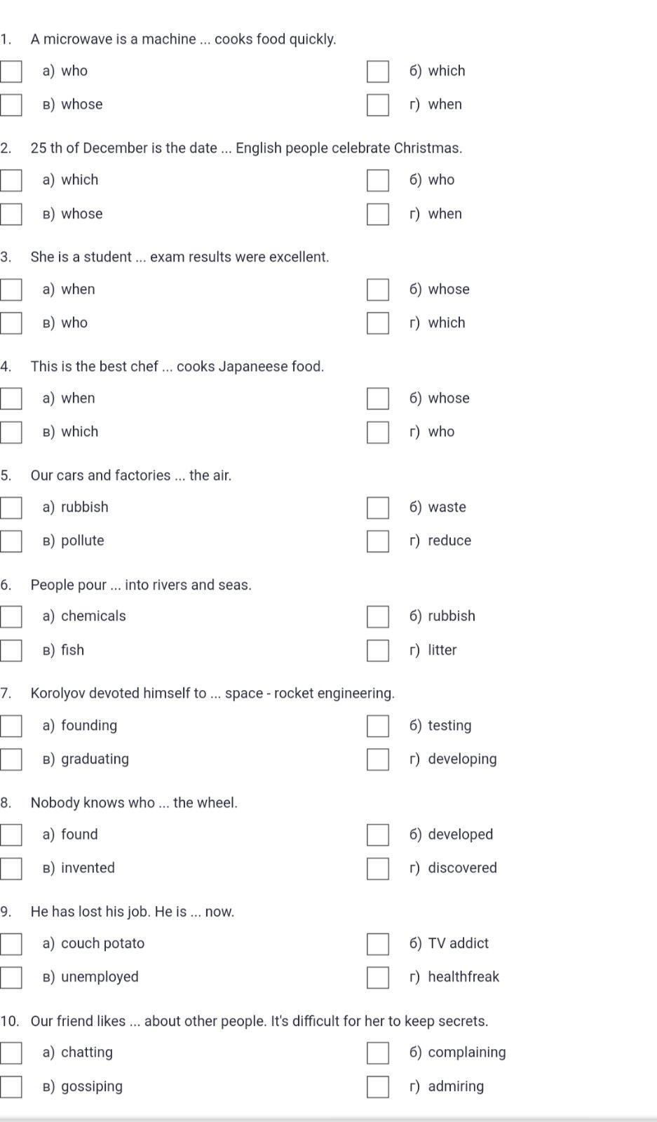 1 а 2 в 3 г 4 б 5 а 6 г 7 б 8 в 9 г 10 а