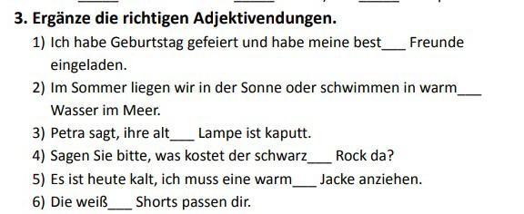 5) Es ist heute kalt, ich muss eine warme Jacke anziehen.