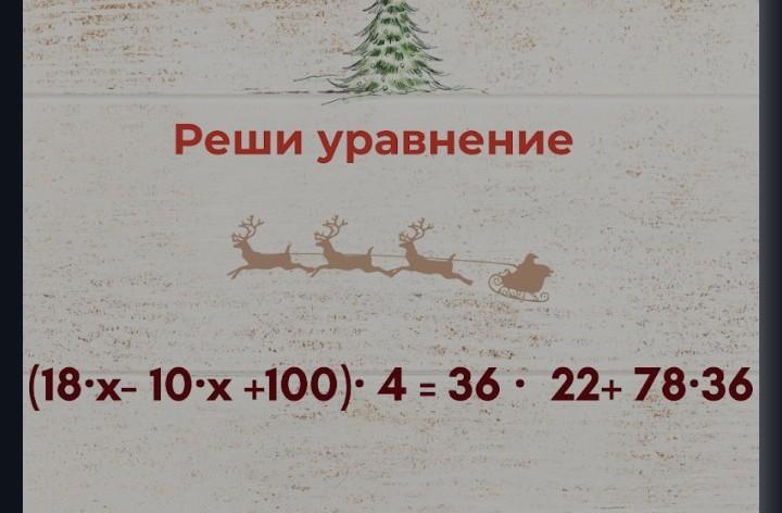 Реши уравнение (18×x-10×x+100)×4=36×22+78×36