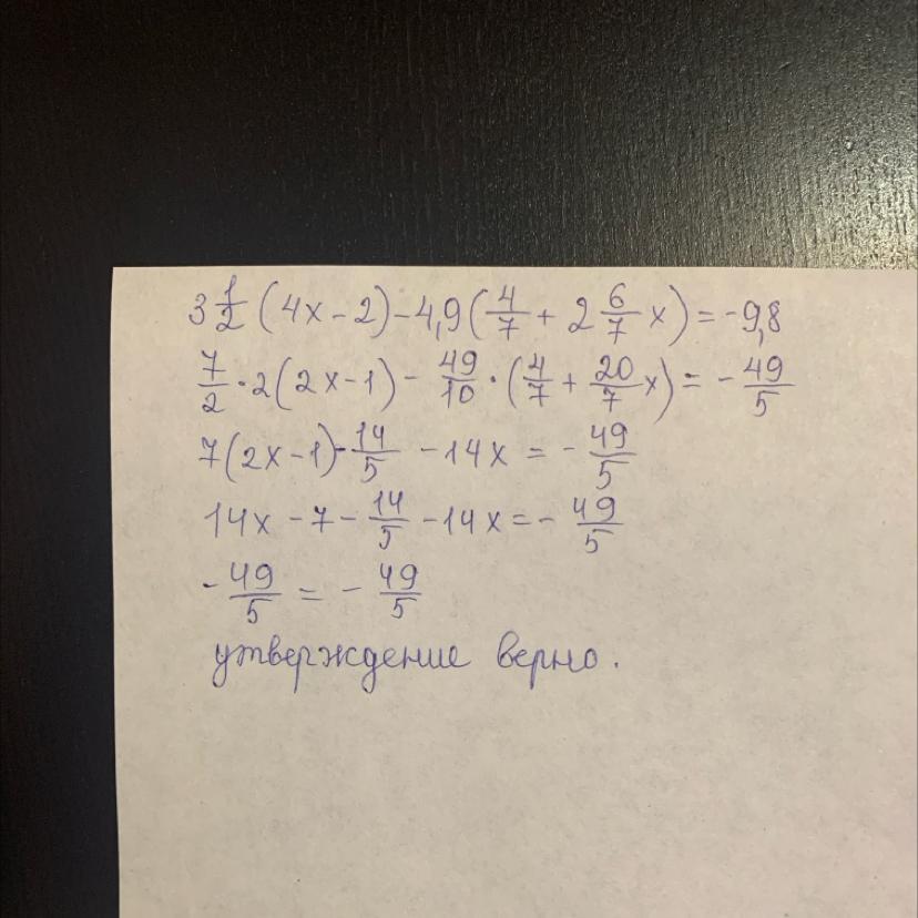 3 1/2 (4×-2)-4,9(4/7+2 6/7×)=-9,8