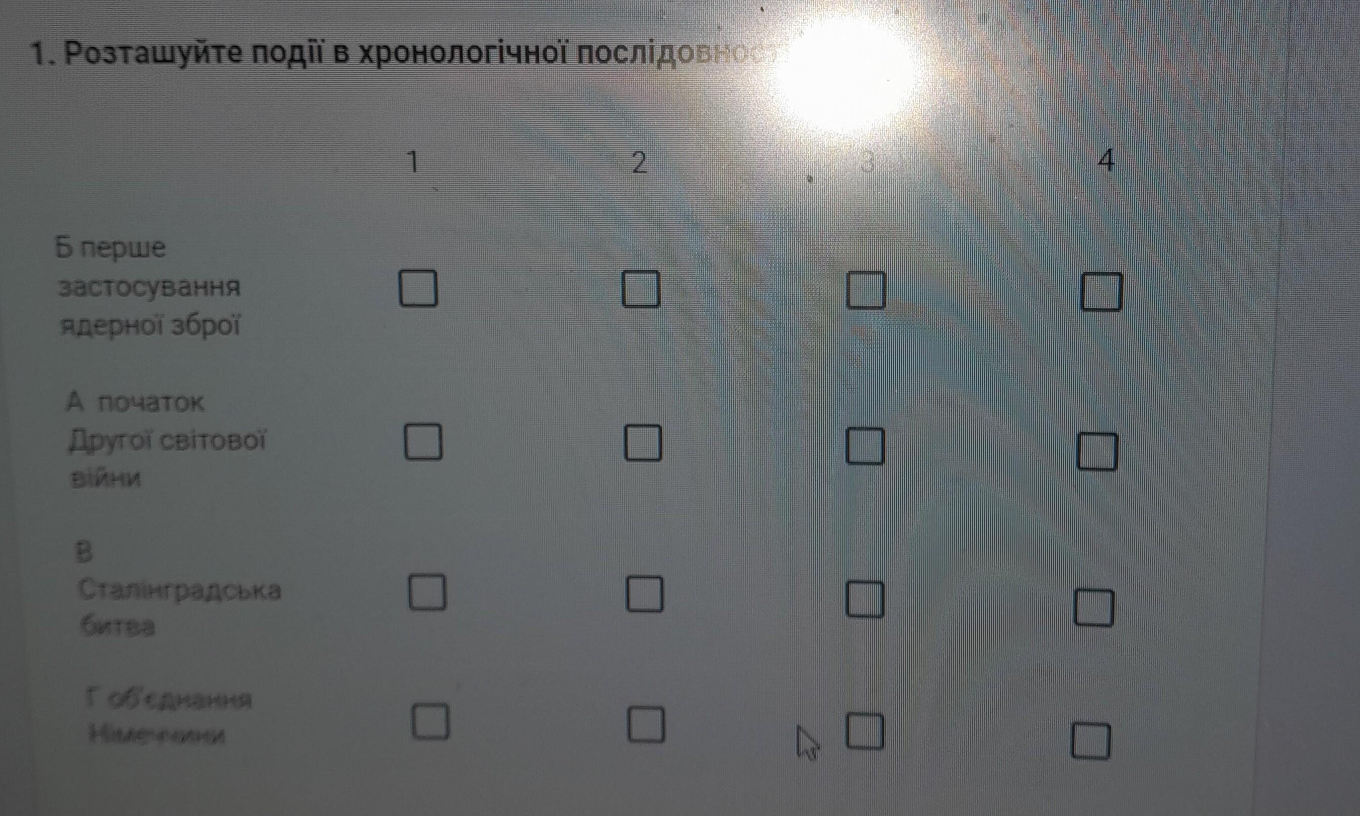 1. Розташуйте події в хронологічної послідовності:
