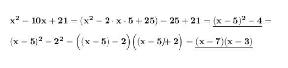 - 4. Дан квадратный трехчлен: х² - 10x + 21. а) Выделите полный квадрат из квадратного трехчлена; b) Разложите квадратный трехчлен на множители.