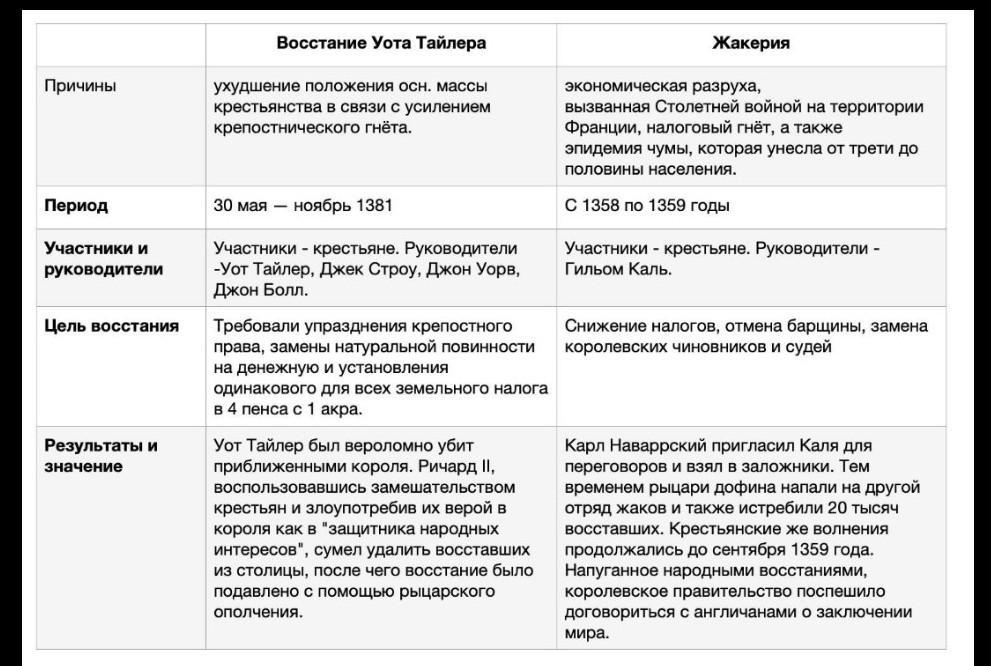 Задание 1. Заполните таблицу о крестьянских восстаниях Средневековья. (6 баллов) Восстание У.Тайлера Жакерия Причины Временные рамки Итоги