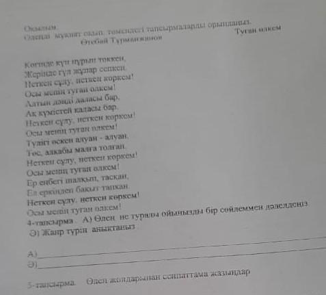 А) Өлең туған өлке туралы Дәлел: Неткен сұлу, неткен көркем! Осы менің туған өлкем! Ә)Көркем әдеби жанр