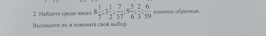 11 7 526 9-;-;- 2. Найдите среди чисел 8-; 3-; 6'3'59 7 2 57 Выпишите их и поясните свой выбор. взаимно обратные.
