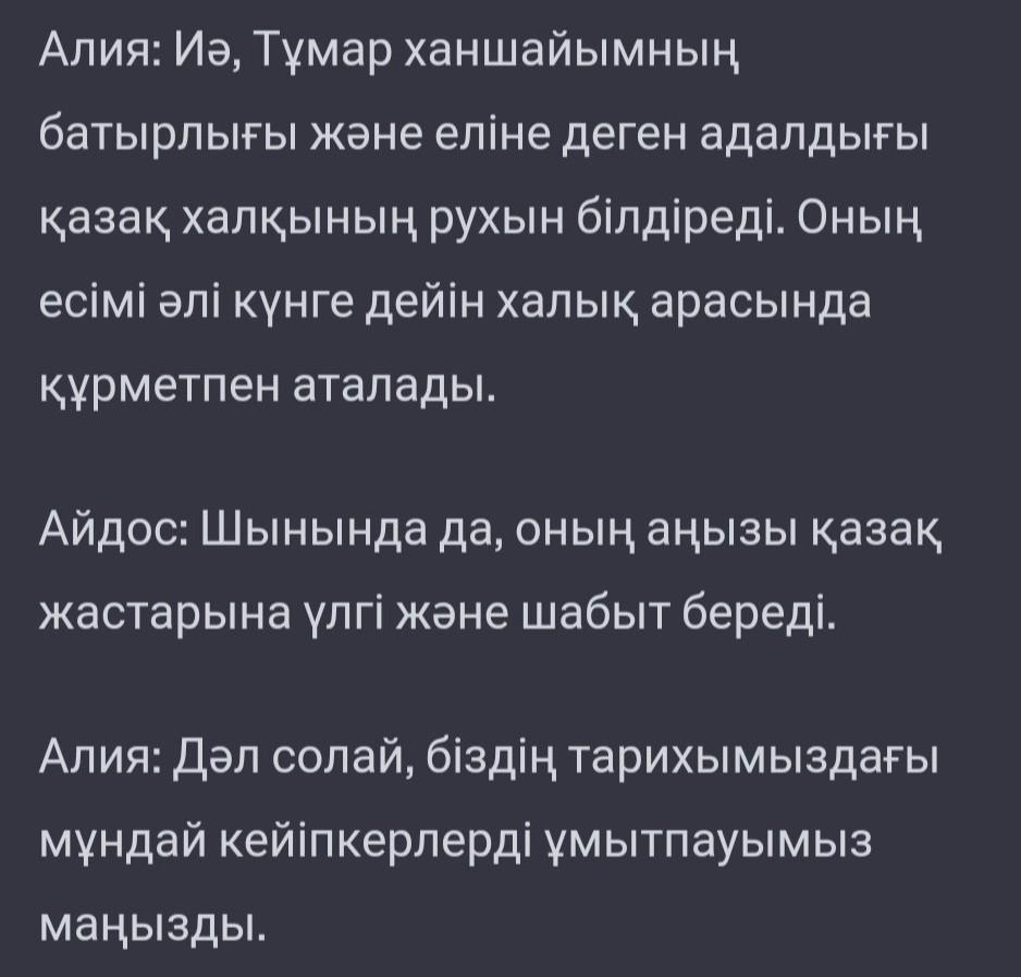 диолог на тему Тұмар ханшайым туралы аңыз
