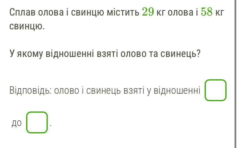 Сплав олова і свинцю містить 29 кг олова і 58 кг