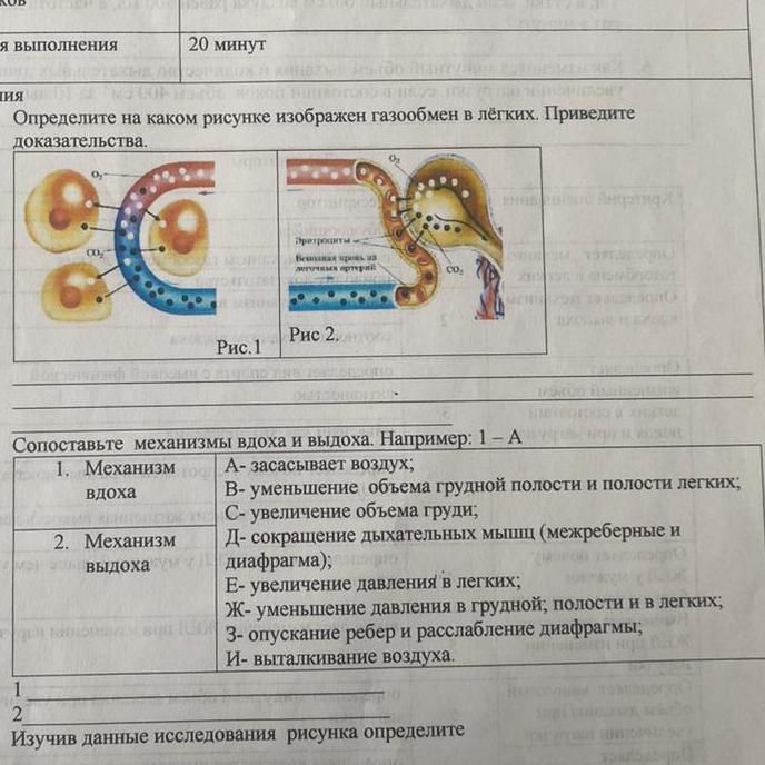 2. Сопоставьте механизмы вдоха и выдоха. Например: 1 - А