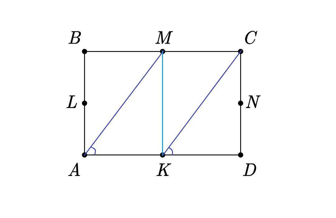 AK ║MC отрезки, лежащие на противоположных сторонах прямоугольника.