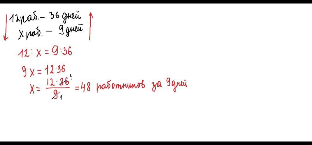 решаем пропорцией, это обратная пропорциональность, чем меньше дней, тем больше надо работников
