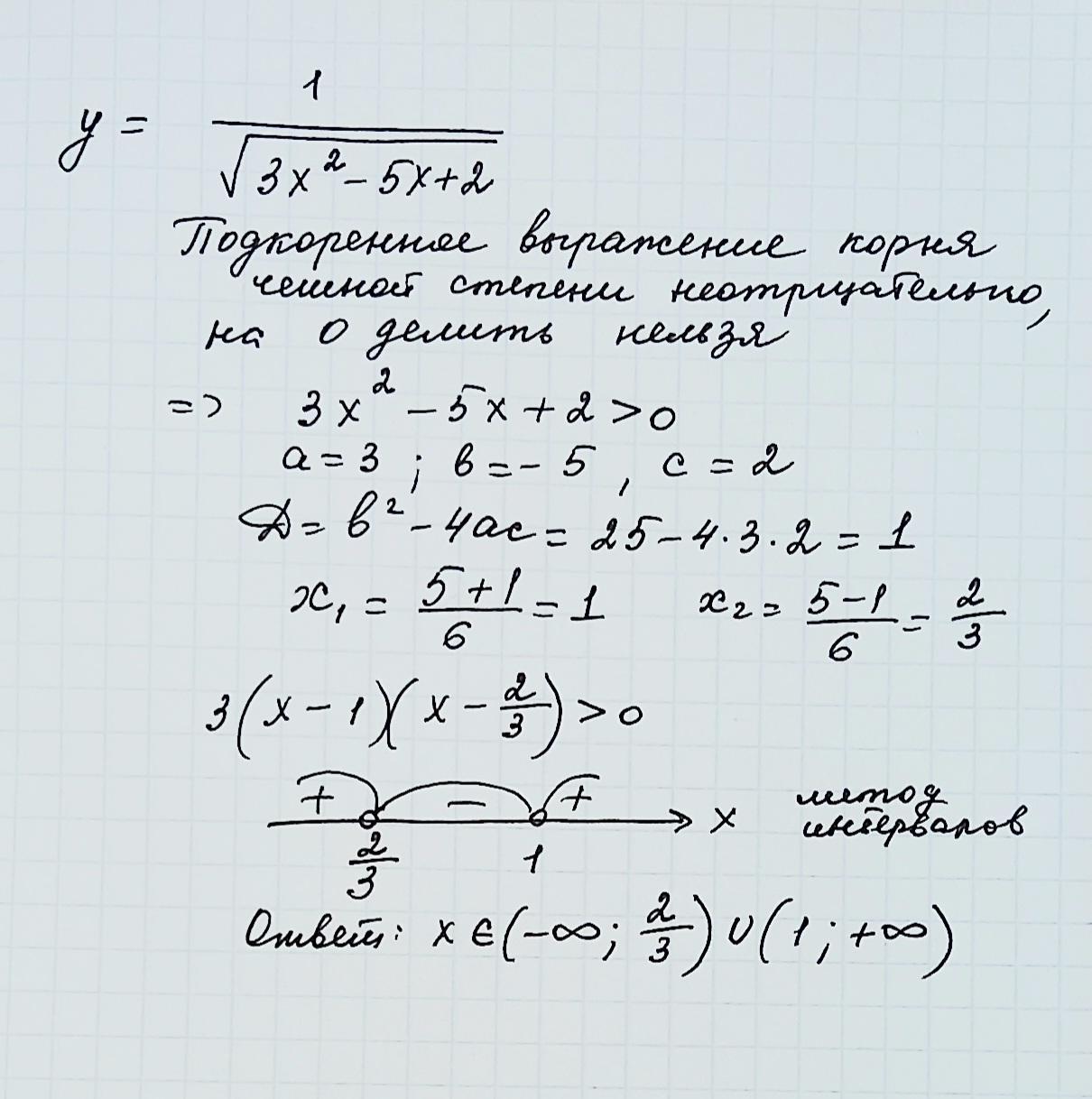 Последнее мое решение, все расписано подробно, рекомендую ознакомиться - и вы поймете как находить область определения в подобных функциях