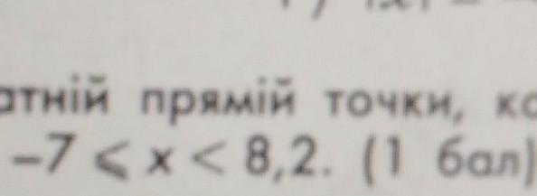 познач на координатній прямій точки координати яких дорівнюють цілим значенням x за умови -7 ≤ x< 8,2