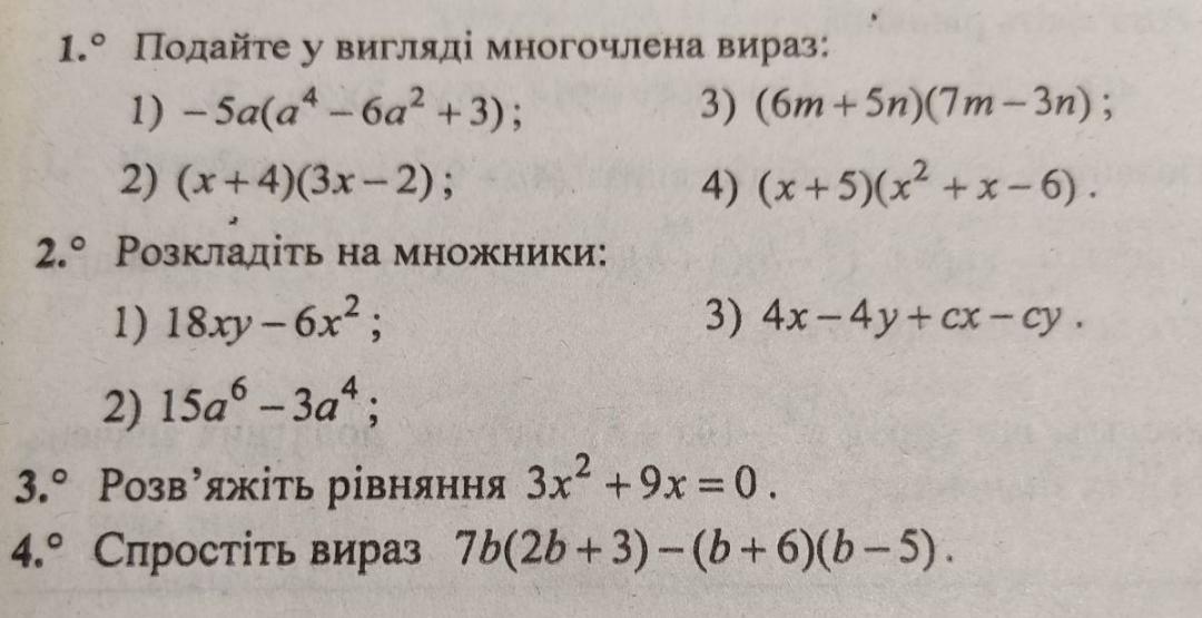 1) -5а(а⁴-6а²+3)= -5а⁵+30а³-15а