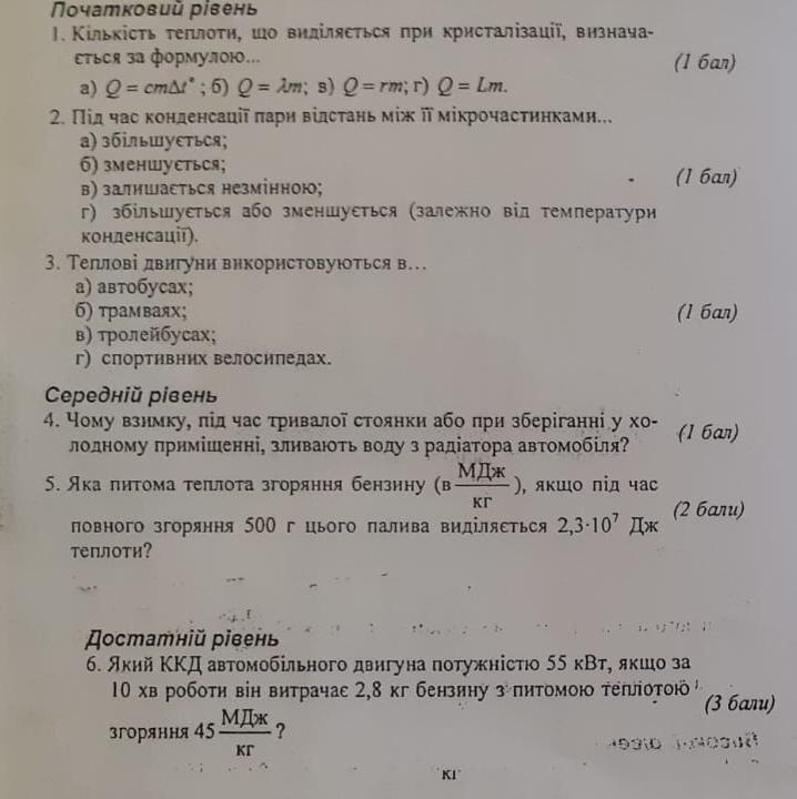 Срочно!!!на фото 5 завдання!!Яка питома теплота згоряння бензину (в ), якщо під час кг повного згоряння 500 г цього палива виділяється 2,3-107 Дж теплоти?
