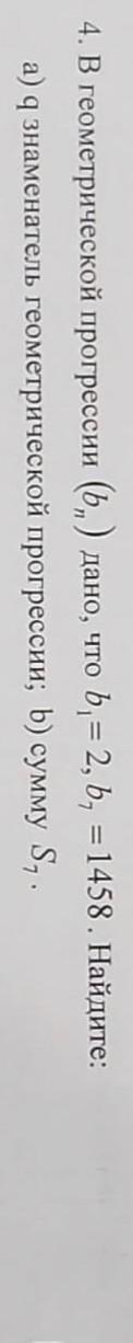 4. В геометрической прогрессии (b,) дано, что a) q знаменатель геометрической прогрессии; b) сумму S1. b,= 2, b, = 1458. Найдите: 1 1