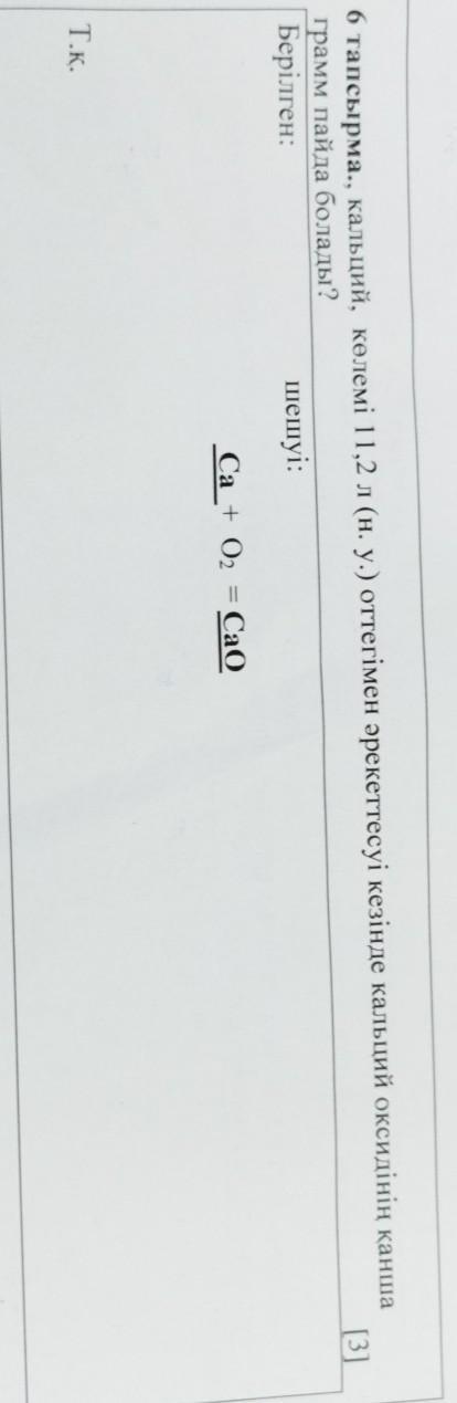 кальций колемы 11,2л (н.у) оттегымен арекеттесуы кезынде кальций окасилынын канша грамм пайда болады