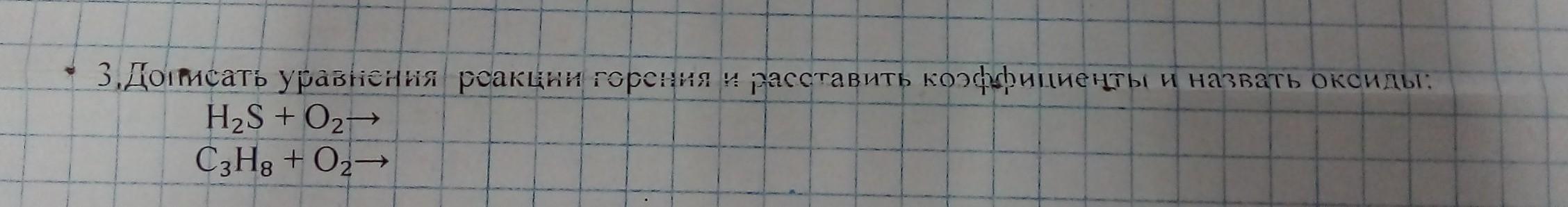 3. Дописать уравнения реакции горения, расставить коэффициенты и назвать оксиды:
