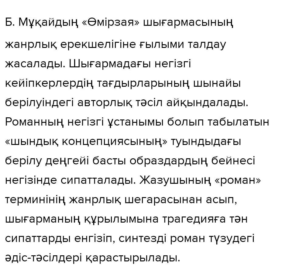 Шығырманың жанырлық ерекшелігін анықтаңыз ,дәлелдеңіз Б.Мұқай «Өмірзая» раманы