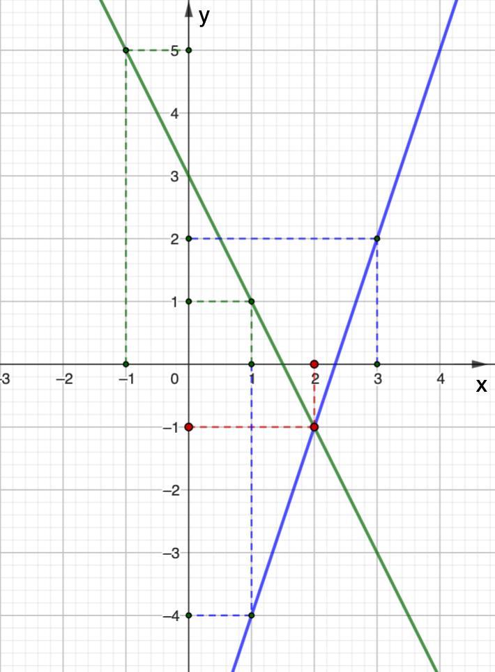 Для того, чтобы решить систему графическим методом, надо построить график каждой функции. Координаты точки пересечения - решение данной системы.