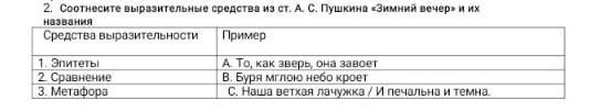 соотнесите выразительные средства из стихотворения Александра Сергеевича Пушкина << зимний вечер>> и их названия