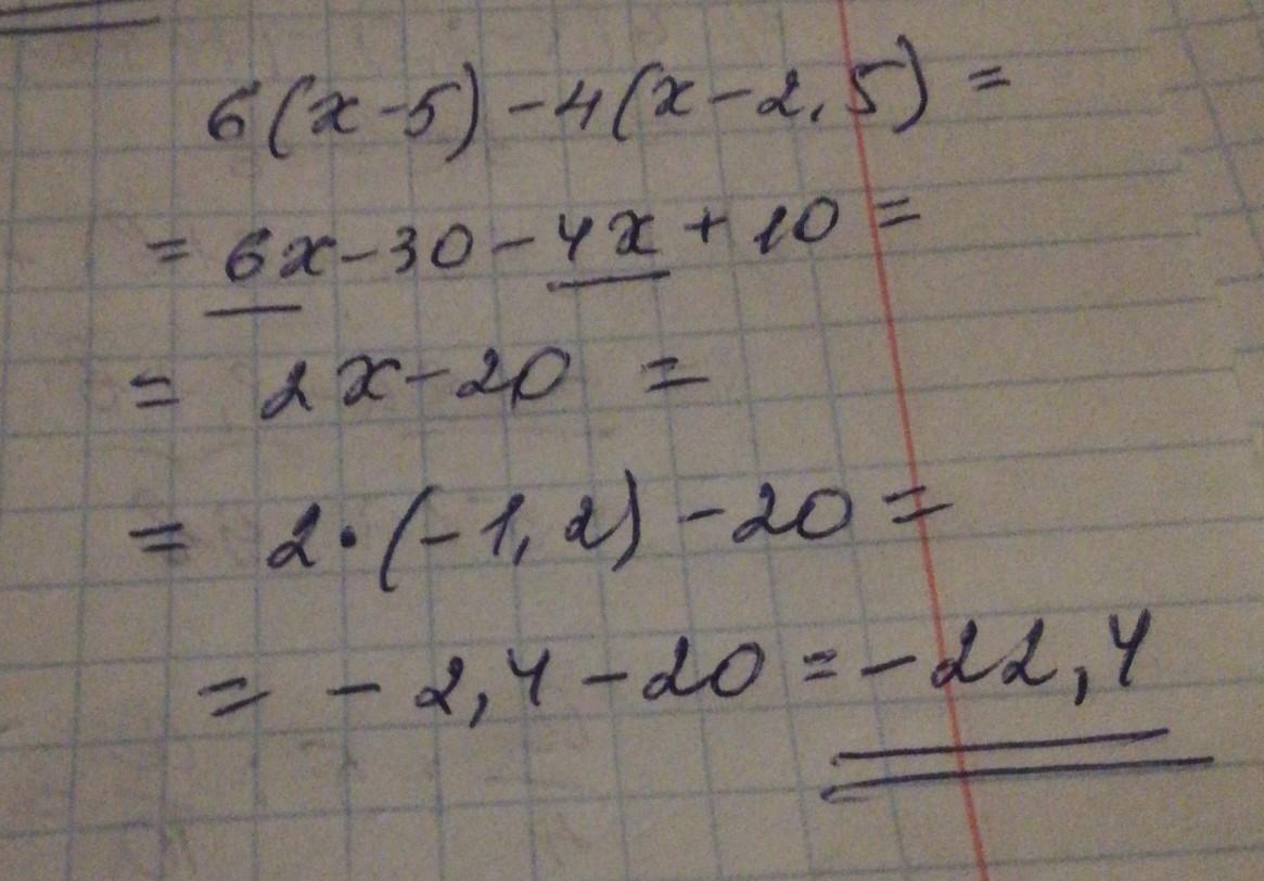 Упростите выражение: 6(х-5) -4(x - 2.5) и вычислите