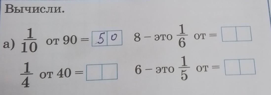 1/4 от 40 => 1/4 * 40 = 40/4 = 10